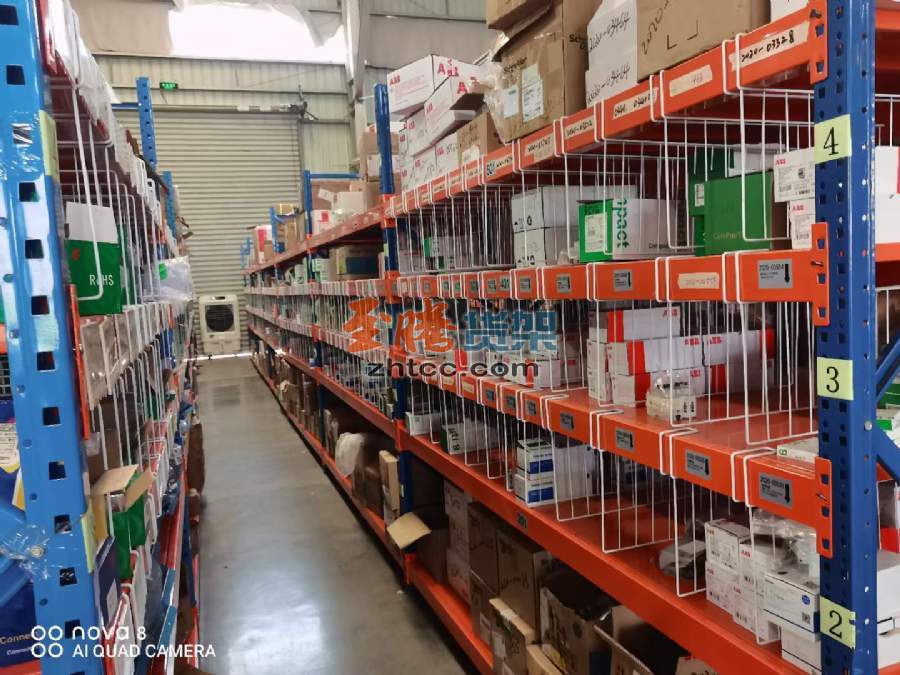 中型蝴蝶孔货架以蝴蝶孔结构锁紧,依靠货物自重进行锁紧,装拆方便,主、辅架可无限连接,增加货架牢固,节约投入。层板可以以75mm为单位上下任意调节。层面可铺钢层板,亦可铺木板等其它板类。货架由柱片、横梁、层板、安全销和塑料底脚组成