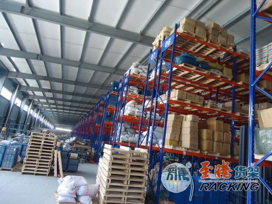此为一期重型货架工程,二期正在生产中。二期仓库相对于一期来说,高度要低。为了货架整体的统一性,也考虑到客户后期仓库搬迁,我们降低了一期仓库货架的立柱高度,将顶层横梁安装在靠上部的位置,这样,重型货架的整体仓储性能就不会降低。客户使用的是电动叉车,我们在兼顾仓储库位数及叉车工作效率的情况下,将过道...